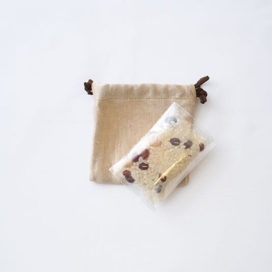 (前年の11月15日艮祭に奉納したお米、お豆、お塩。心身の健康を頂く意味があります)